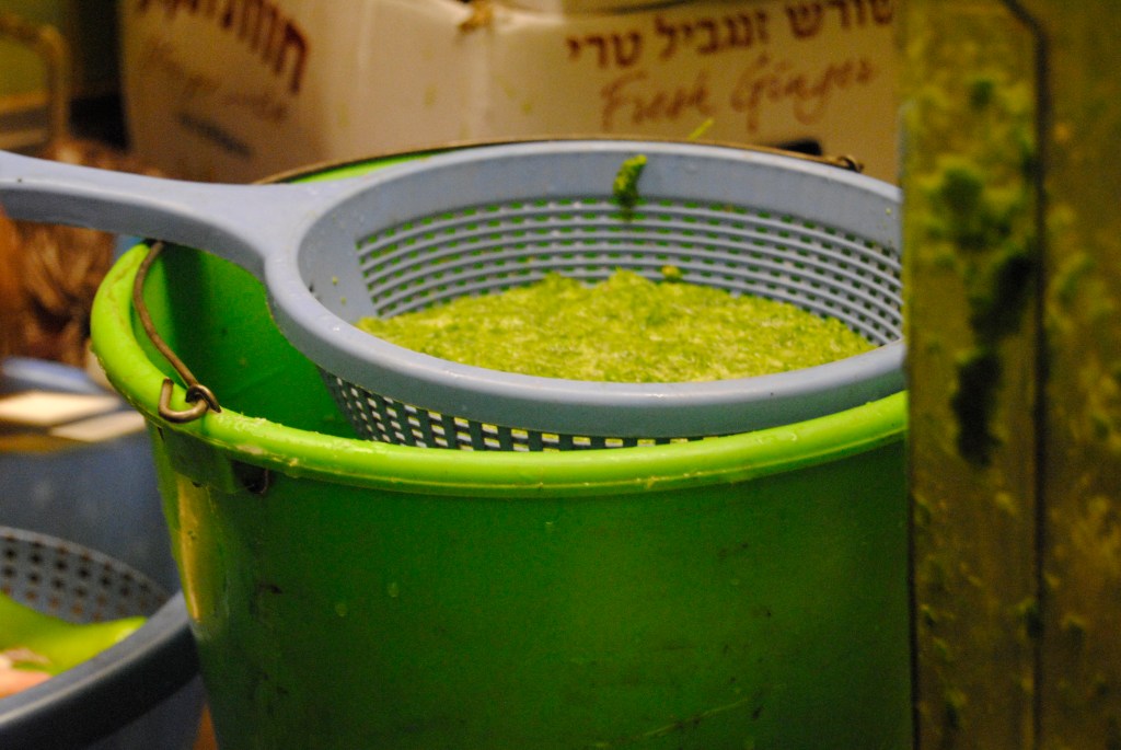 On this particular morning, however, Uzi Ellie taught me how to make Yemenite Schug (a spicy dip that goes on meat, hummus or in soup and pronounced: Skh-ooo-g) and a Passionfruit, Goat’s Yogurt drink. He blessed me, showed me how he blesses the food that he shares with his customers, let me join into the food-making process, taught me the medicinal value of some of his most popular items, got me a little high from the migraine/qat serum, had my soul assessed (I’m doing great, in case you’re wondering), and, most importantly, gave me an experience I will never forget. If you are ever in Jerusalem, I really encourage you to stop by his shop. He is well known in the Machane Yehuda Market (the “shuk”), and his shop really does boast dozens of health benefits, interesting flavors, and an unforgettable experience for anyone.