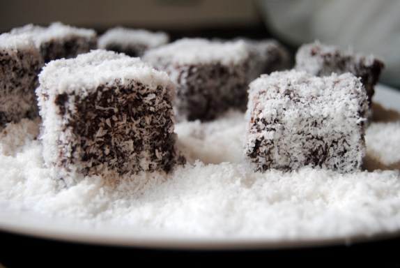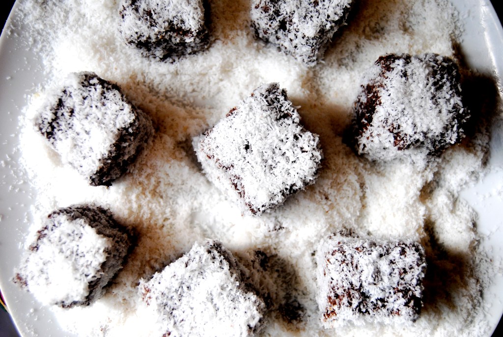 Don’t you just want to roll around in a bed of coconut? Yeah, nope, I don’t want to either. But I don’t mind if my chocolate does! Oh my god, these were so fun to make! I took my version of Basbousa Cake (an Egyptian/Lebanese/Syrian/Greek semolina cake soaked in rose water scented syrup), minus the syrup, and cut it into bite-sized squares, dipped them in melted dark chocolate and rolled them in shredded coconut. They were perfectly sweet, light, and fluffy and went amazingly with tea, my diet, and each layer felt like its own distinctive treat. I will definitely make these again and they were gone in minutes!