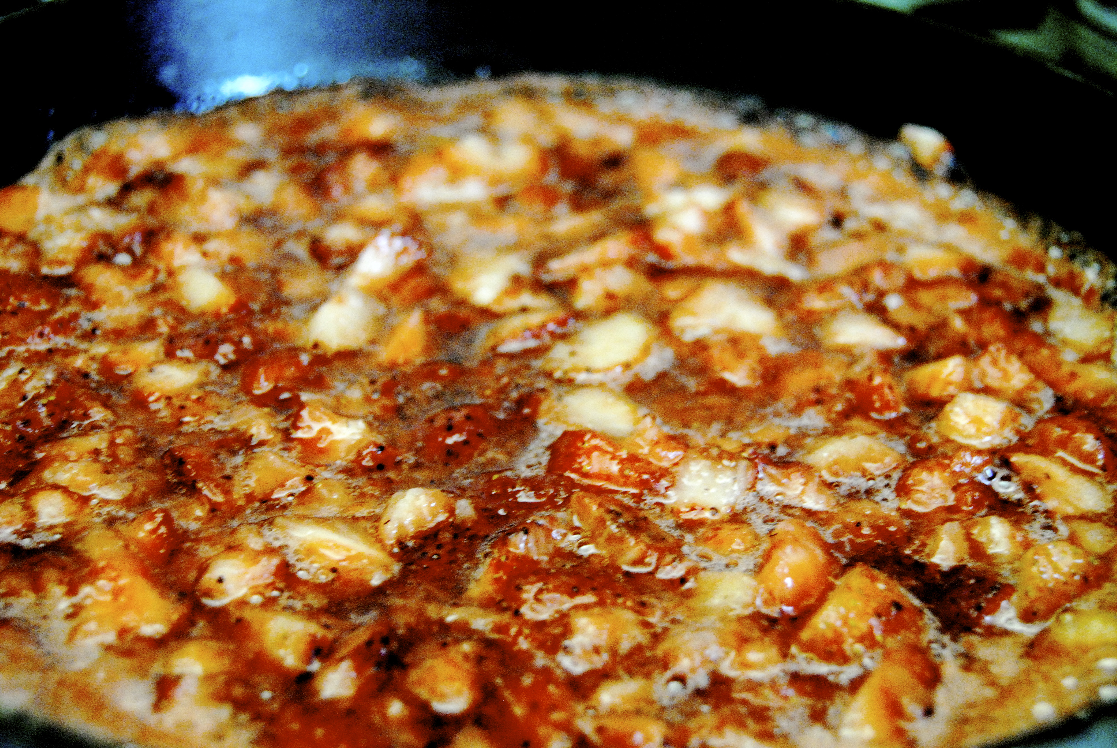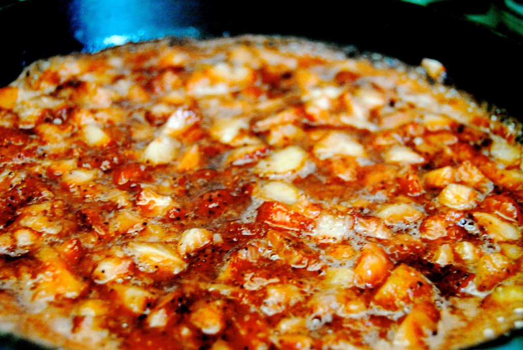 Place all the ingredients into a large frying pan or pot, continuously stirring. Your mixture will look like this for the first five minutes or so.