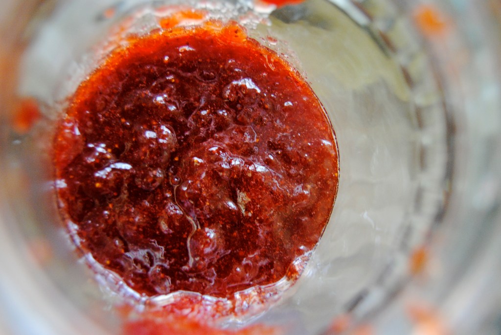 First place a small plate into the freezer. We will be using it in about 5-8 minutes to test if the jam is ready.