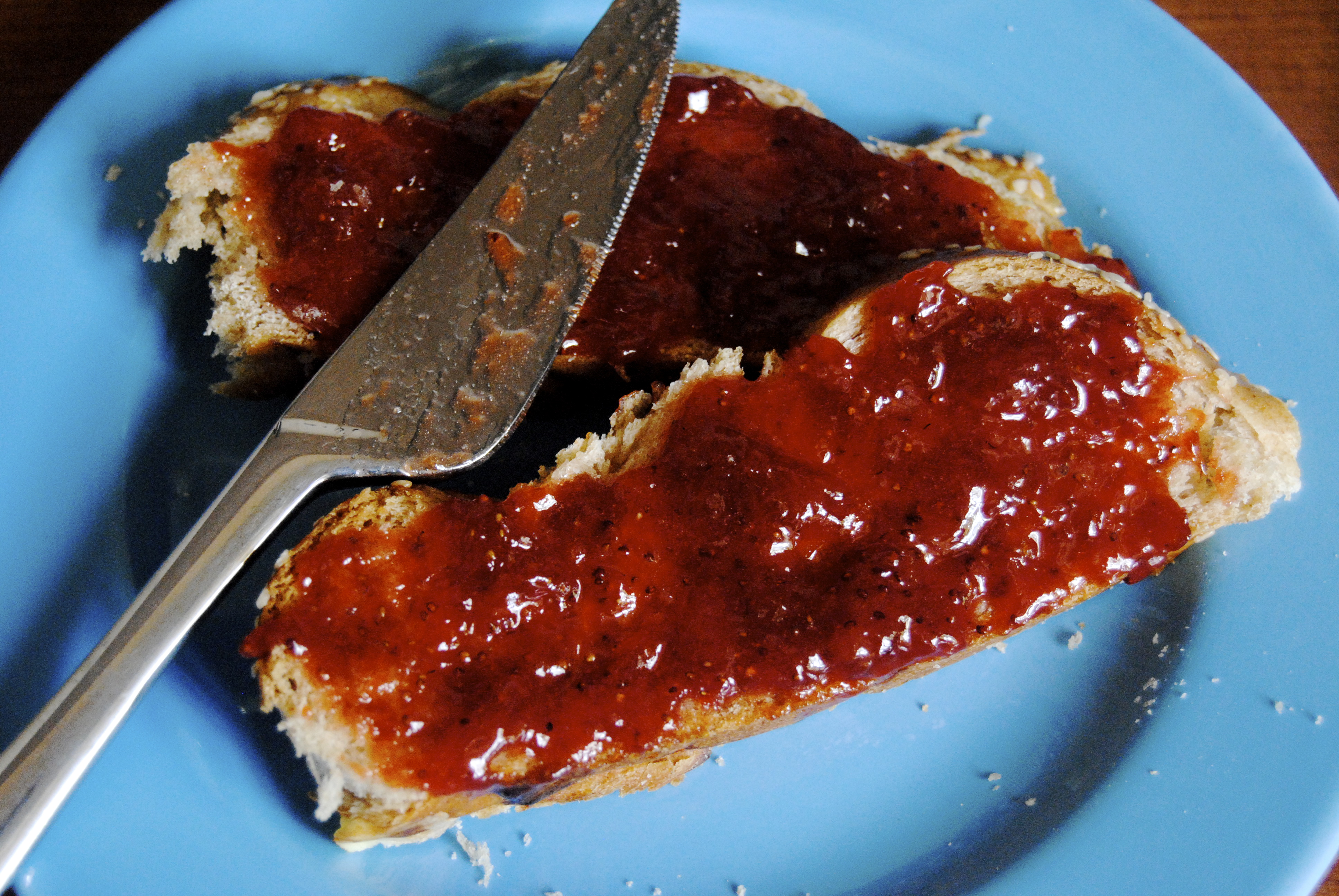 But all is not lost. In this process, I’ve perfected how to make strawberry jam, since it really does pain me to think of tossing that many strawberries after one day. So, before you toss yours, consider making a delicious, not-too-sweet rose water scented strawberry jam.