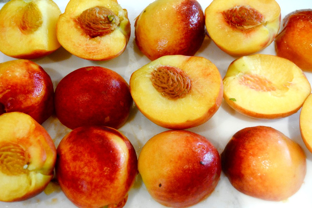 7 peaches; cut into moon shapes (of course, you could use apples, nectarines, apricots, plums, a mixture of some or just a few–your choice)