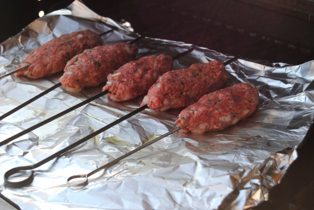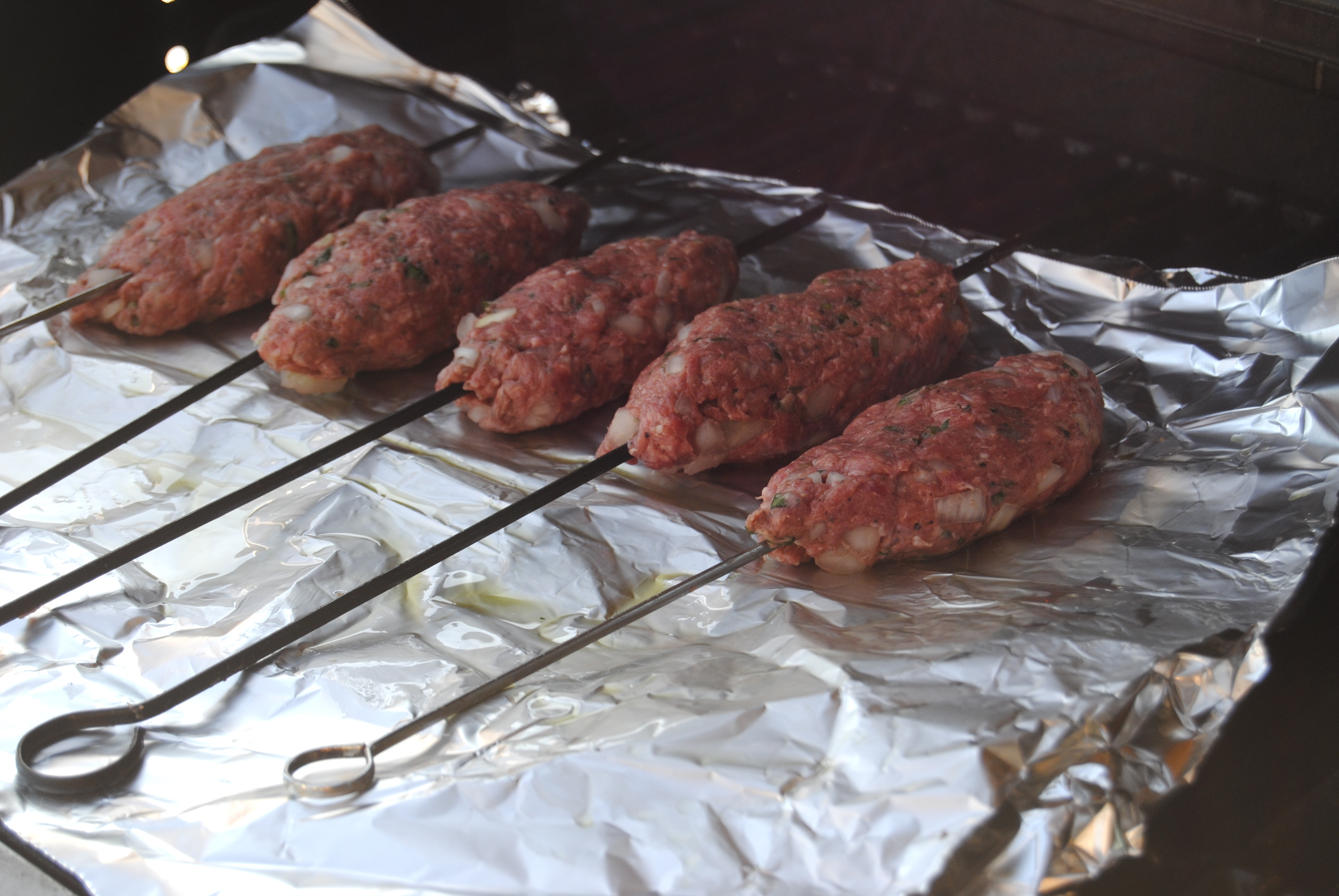 With wet hands, shape the kebabs onto the skewers. To make a koobideh (Persian kebab) style, make a long, rectangular tube with the meat. Make indentations into the meat with your pinky and place on the grill or run a skewer through it. Or, make oblong-shaped patties and then run the skewer through, as I've done above. I think this is easier that forming the meat around the skewer. Grill on the BBQ or simply make patties like you would hamburgers and place in the broiler for about 12-15 minutes, depending on your grill/broiler.