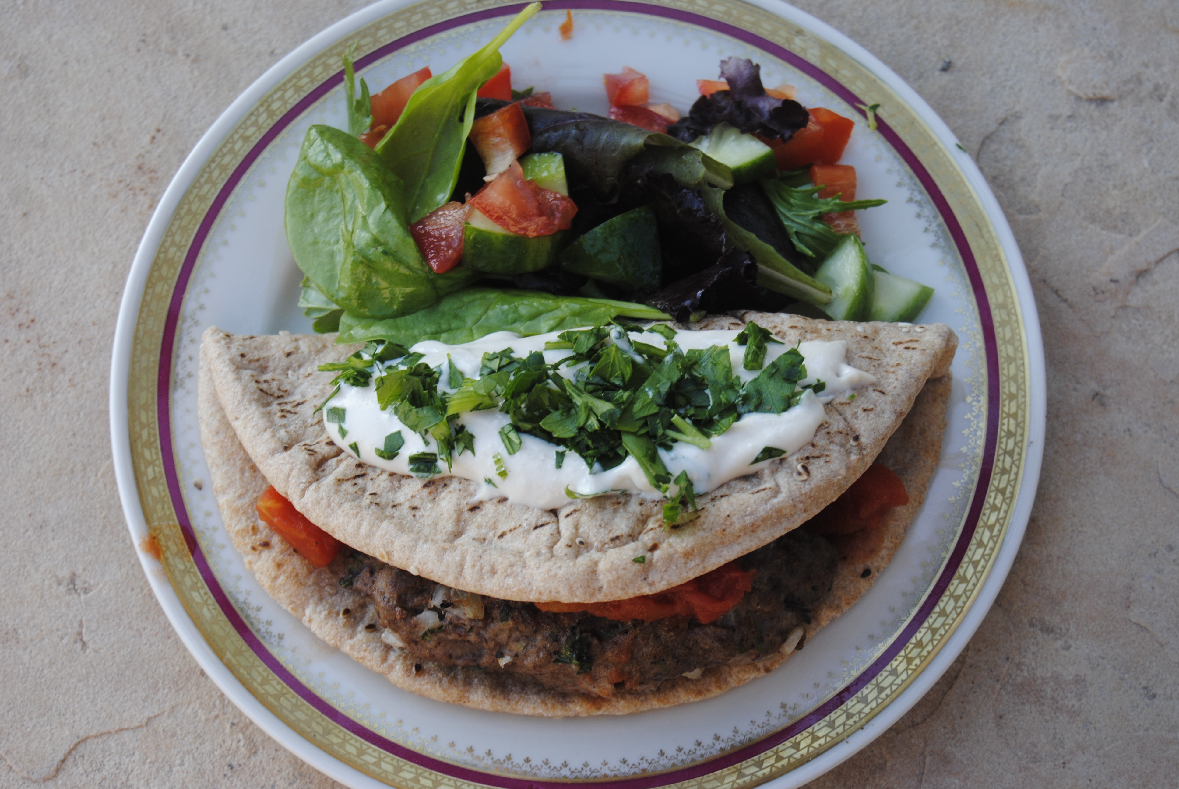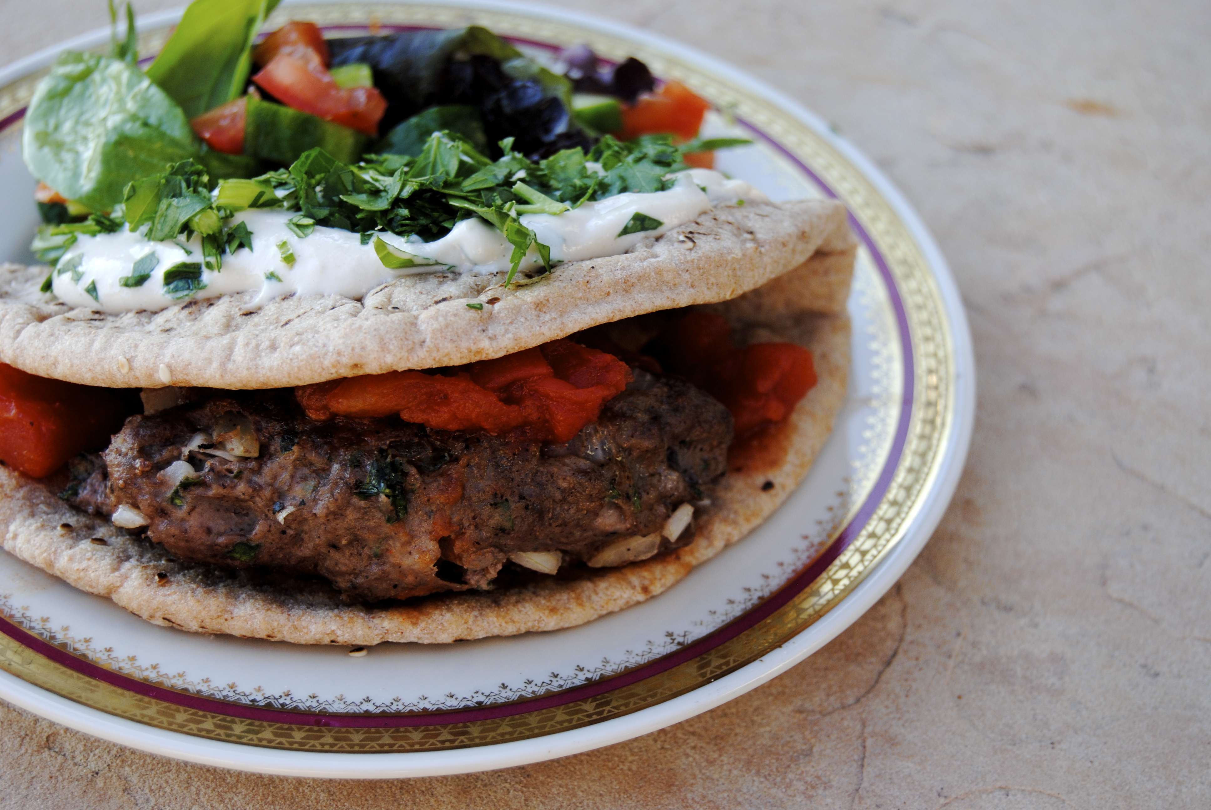 Routine getting you down? This is a Middle Eastern take on the classic & boring American hamburger. It’s very similar to the Persian-style kebab, koobideh (koob-ee-deh), but the shape of the patty is slightly different. The meat is so tender it melts in your mouth and the baharat gives the kebab a gorgeous aroma and flavor. If you haven’t tried baharat yet, you really should. I use it in meats and in baked goods and it really just shakes up boring classics.