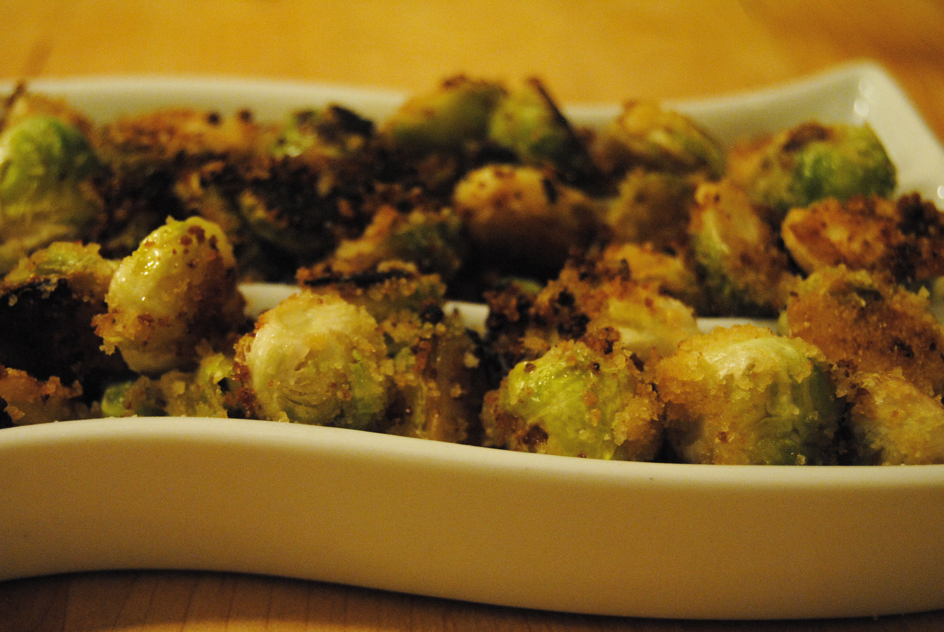 I had ever eaten one until two weeks ago because I trusted that little voice inside me going, “eeeew, Mommy! Noooo!” But recently, I was practically forced to eat them at a bar, starving, really, really not wanting to eat a burger and finally settling on brussels sprout chips which the gal said were super popular. Two days later, I was practically force fed the little critters again when I went out with some friends and the two appetizers I wanted were “gone” and the only non-fishy (I’m allergice) appetizer was…DUM Dum dum: panko crusted roasted brussels sprouts and everyone looked at me like, “yeah, definitely, definitely we’ll take those instead!”