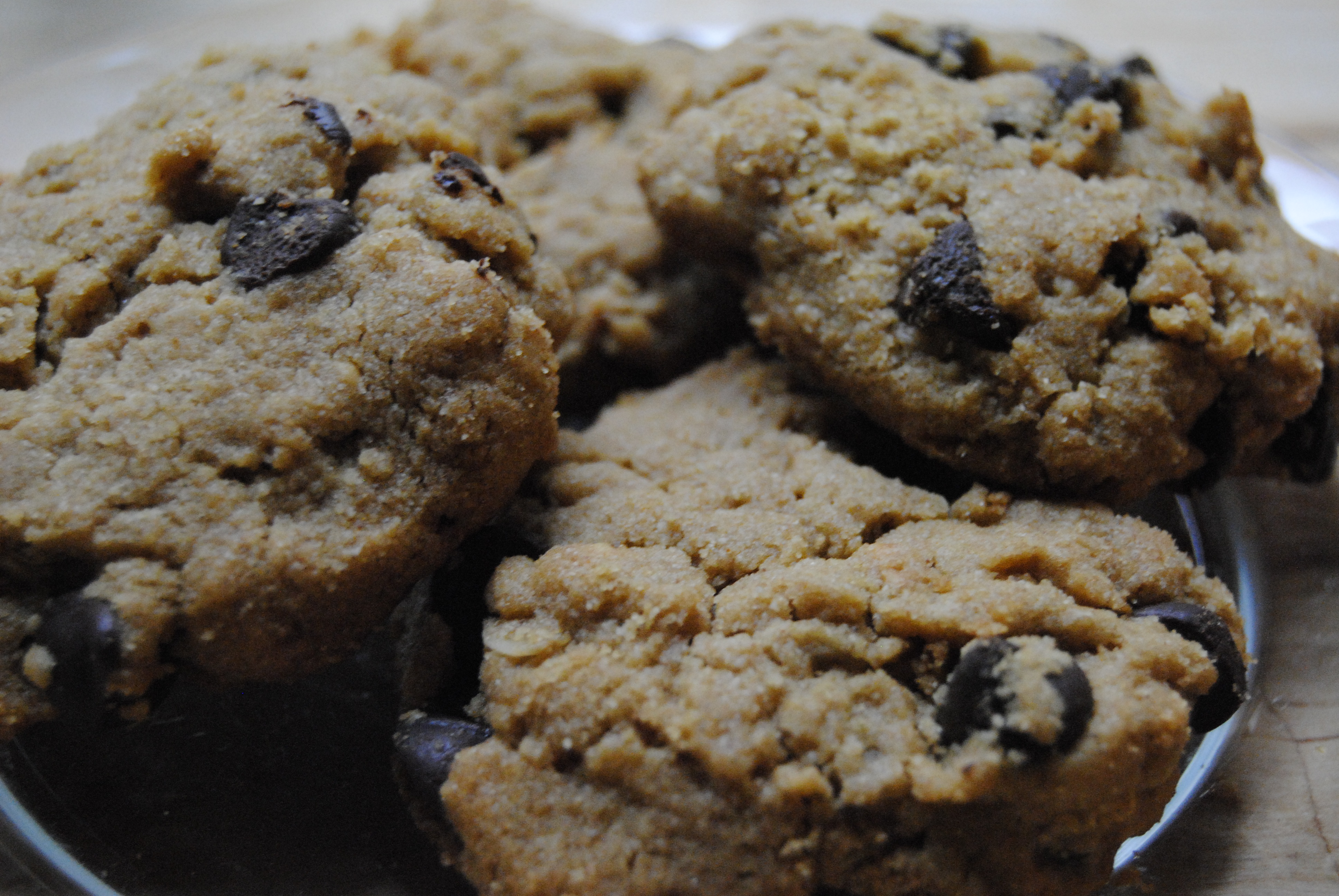 Some people like chewy ones. (numnumnum) Some people like crispy ones. (edges only, please) Some people like plain ones sprinkled with sugar. (snooze fest). Some people like…(ew)…raisins in theirs. But nobody hates chocolate chip cookies. That’s like hating puppies. Nobody likes dry cookies either, but some people like whole wheat flour. Other people can’t hang with flour so they use …xanthum gum? (what the heck is that anyway?) Once I saw a recipe with hard boiled eggs. That just makes me depressed.