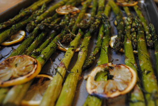 I know it’s messy, but when you remove them from the oven, slice the asparagus into 1-2 inch pieces and chop up the lemon. I suppose you could cut the asparagus first, but you can’t with the lemon.