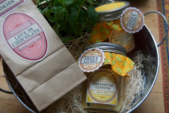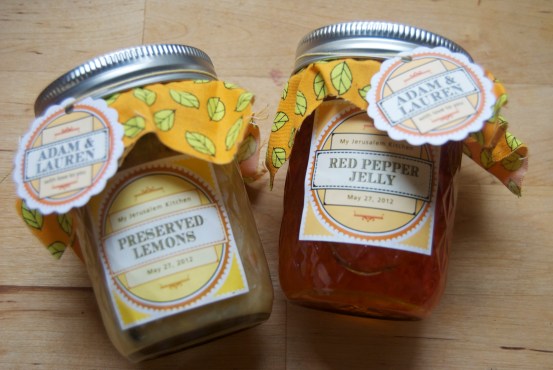 This salad was SO good. I made a few minor tweaks, not because I think I know better, but because I don’t have a grill, didn’t have honey on hand, am on a diet, and really like lemon. It’s the perfect salad for summer or if you’re in the mood for something light. It took, max, 20 minutes. This probably isn’t kid friendly since there are a lot of “weird” ingredients, but it’s definitely the right thing to cook up for some girlfriends or if you’re trying to win over the guy you’re dating and want him to officially become your boyfriend. Also pictured below are some really adorable items my step-mom canned for my bridal shower as a nod to myjerusalemkitchen. Hope you enjoy!