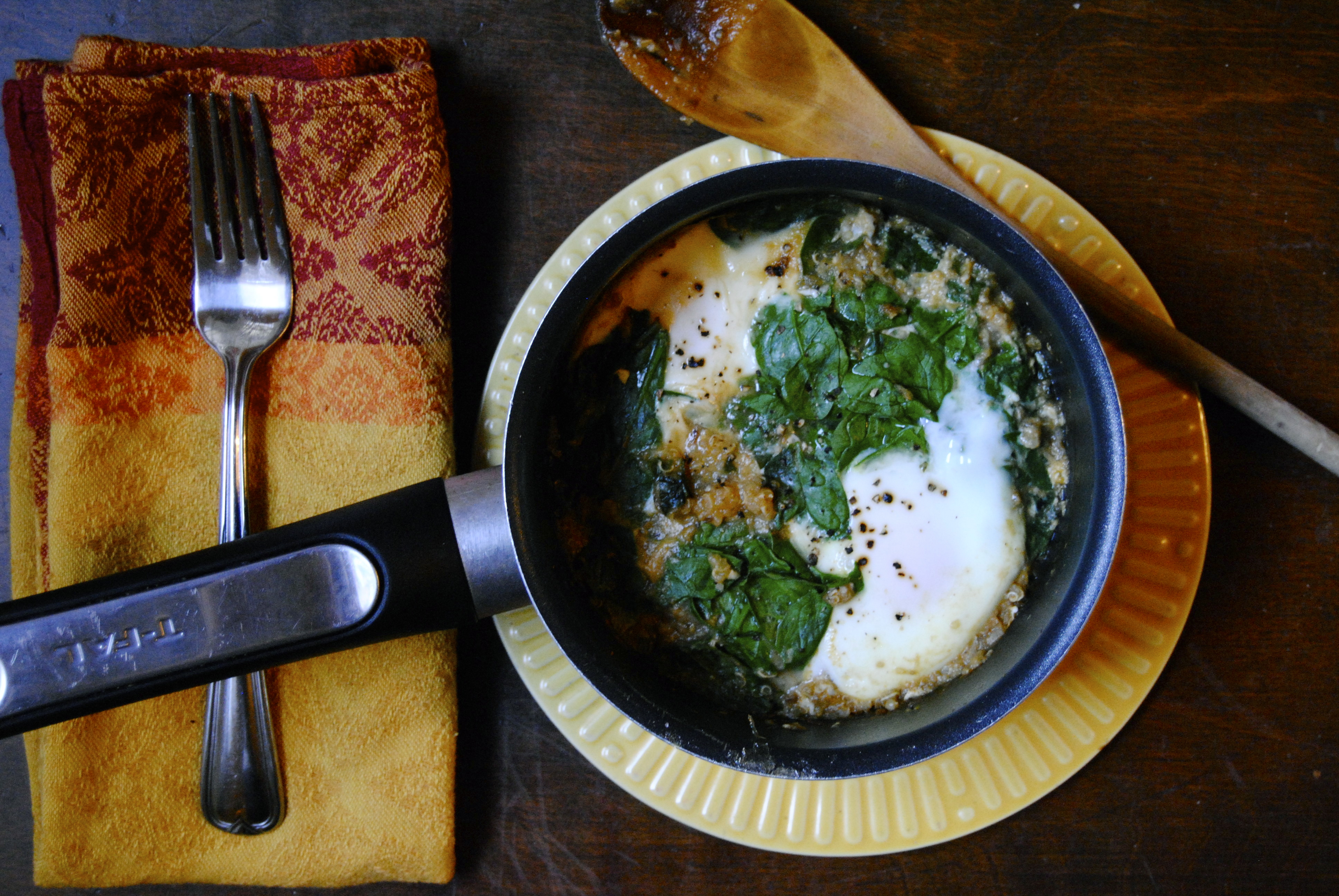 Leftover soup? Tear a handful of spinach and crack a couple of eggs. Salt & pepper, cover with foil, cook over medium heat for about 15 minutes. Makes for a delicious breakfast!