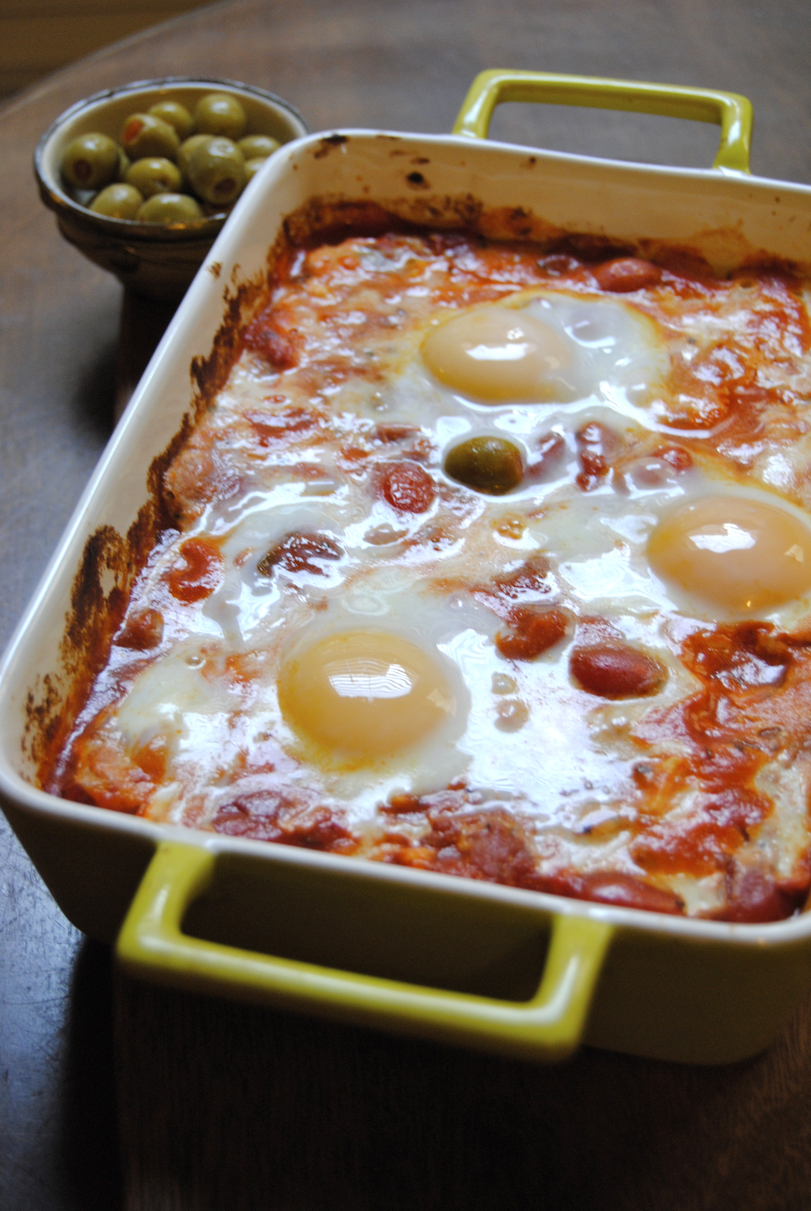 Holy moly. I want this on my plate, now. It combines foods I love: shakshuka (though sadly, I haven’t had it since I left Jerusalem), olives and feta.