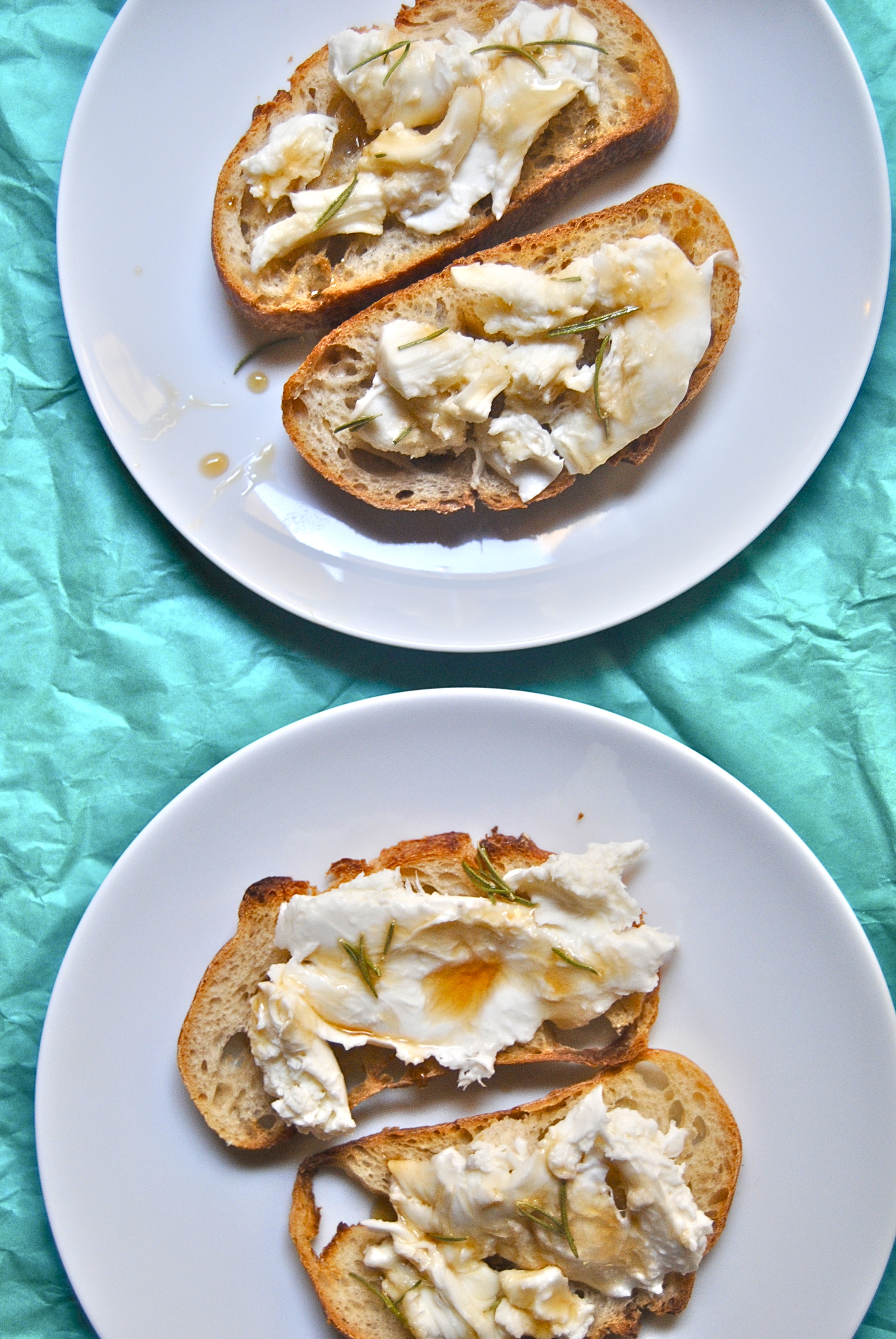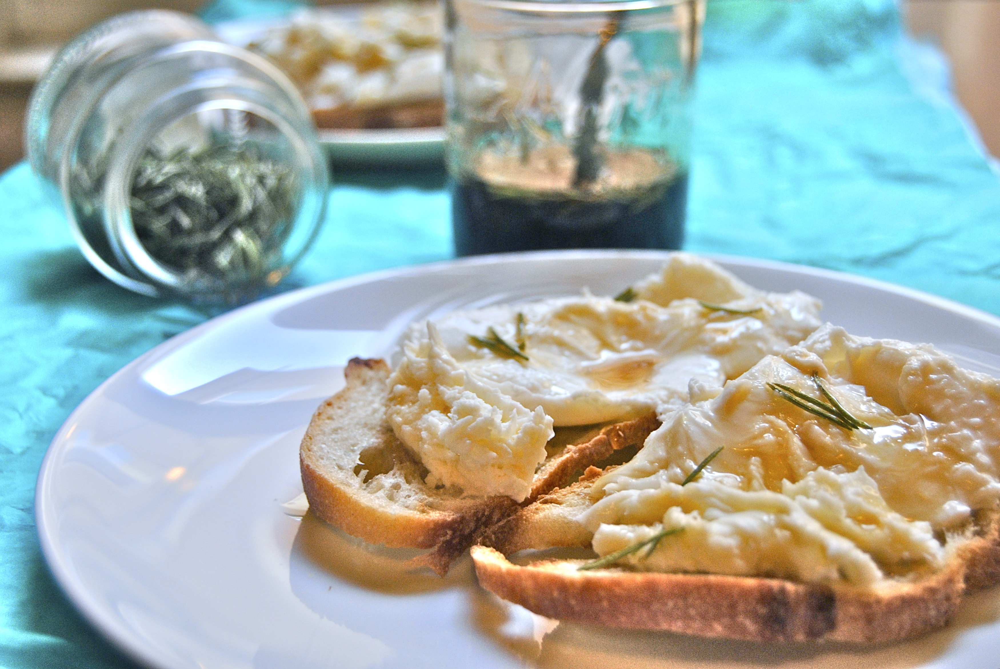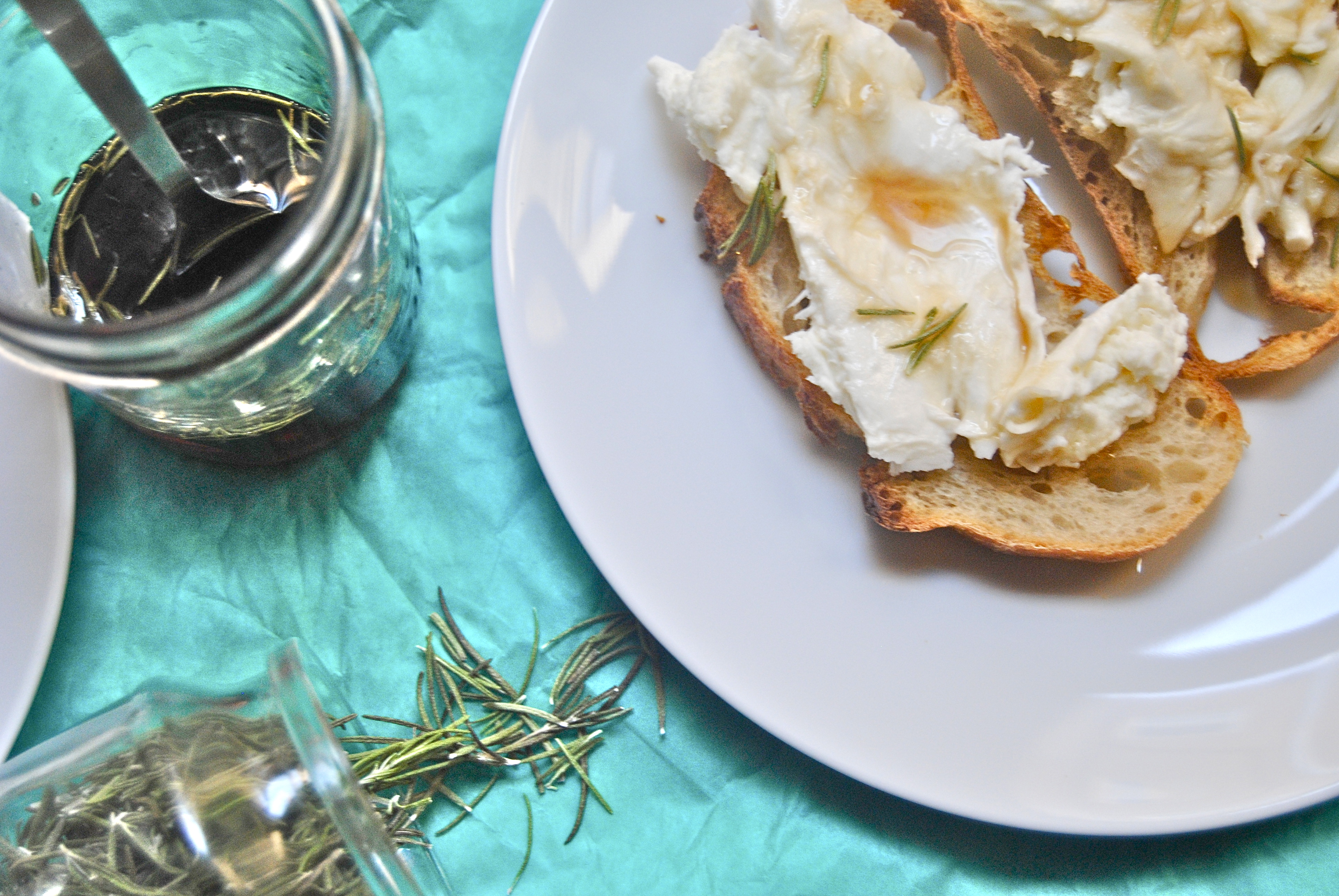 Sometimes we all need something bright and sweet and comforting during a hectic week. I’ve been so busy lately that I’ve just been consuming a steady diet of Acme bread… bread with pickled onions, bread with avocado and sea salt, bread with mozarella and rosemary agave nectar. All you do is toss 2 sprigs worth of rosemary into a small saucepan with 1/4 c agave nectar (you could use honey, too). Cook for about 5 minutes, stirring continuously so it doesn’t come to a boil. Set aside for about 15 minutes. Once you have this on hand, drizzle it over toast for breakfast, over some goat cheese, on pancakes or crepes, use it as a salad dressing, even consider drizzling it onto broiled chicken for some salty sweetness. The combinations are really endless. Enjoy!