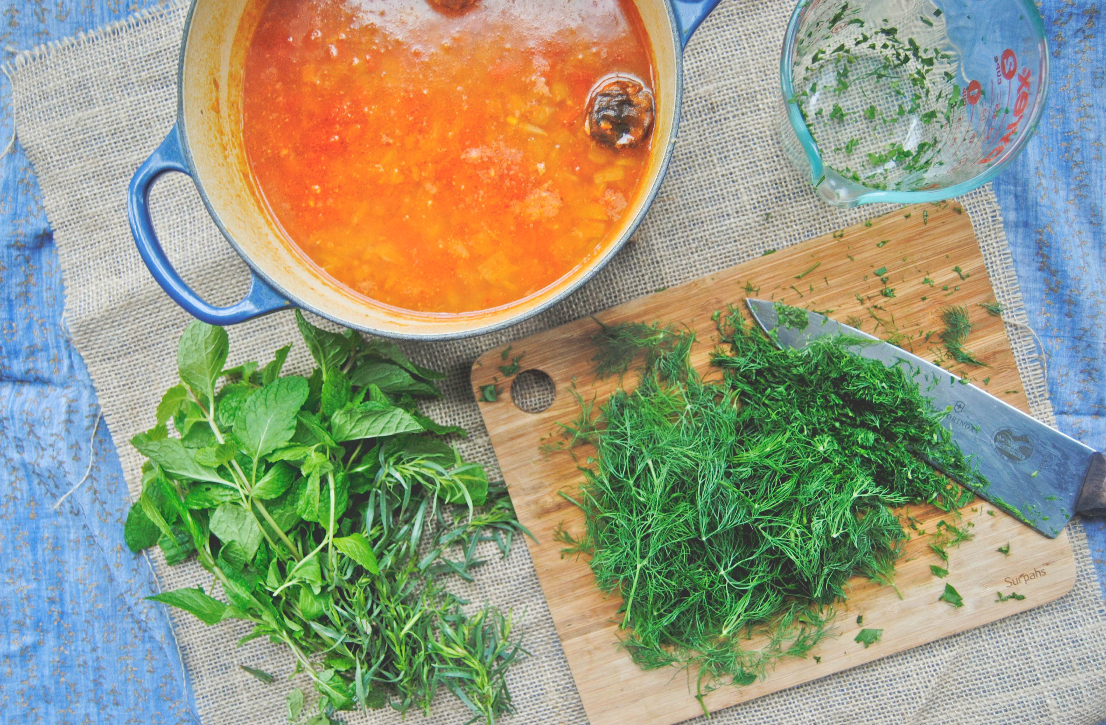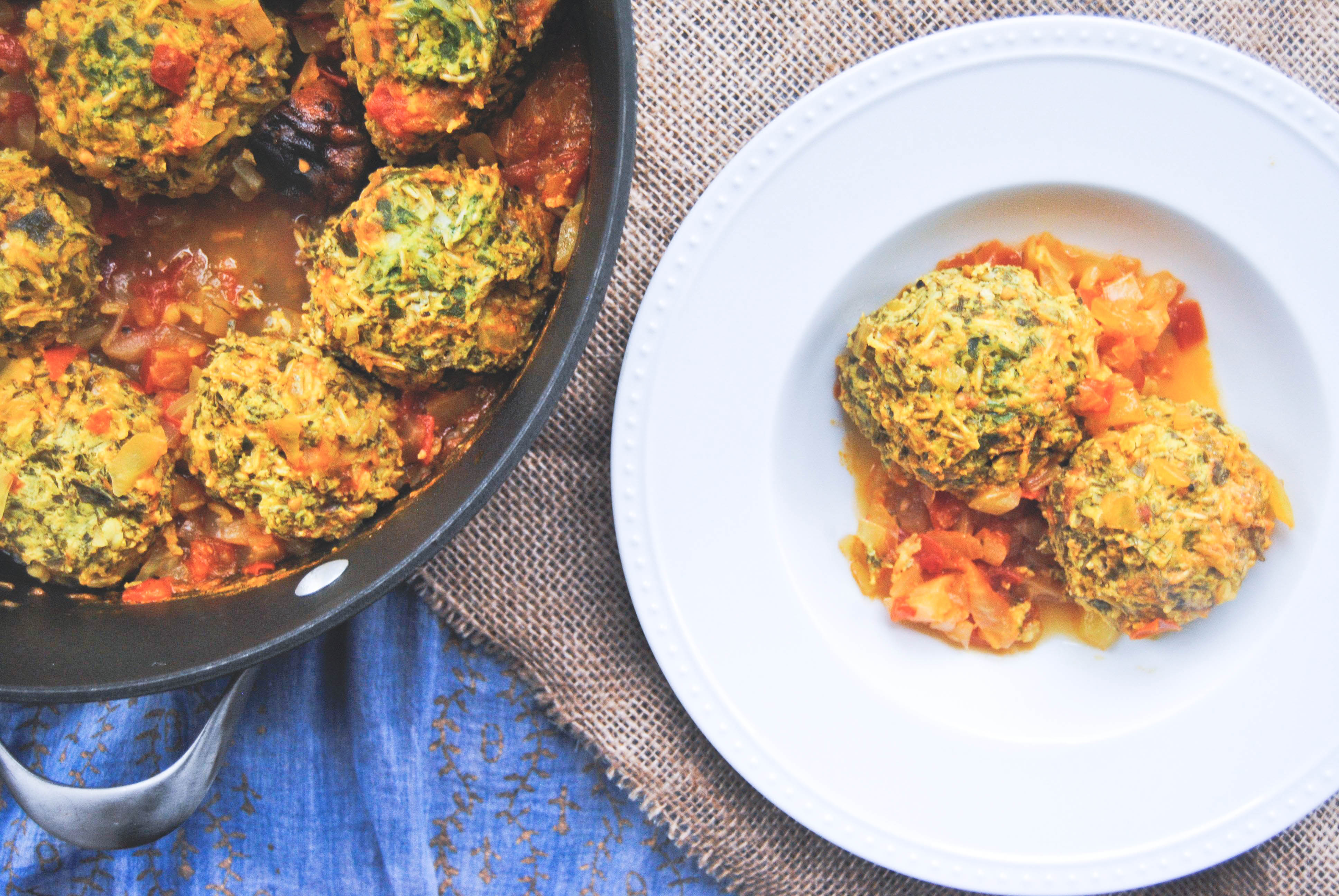 For the gondi: Combine all the ingredients (ground onion, rice, cumin, turmeric, salt & pepper, herbs) and mix well with your hands. Bring the sauce back to a boil. Shape the gondi to the size of a tennis ball or slightly smaller and add them to the boiling sauce. Add just enough water to cover the gondi (this is so the rice fully cooks). You may need to push the gondi around in the pot to make enough room. Cook over a simmer for about 40 minutes.* You’ll know it’s ready when you taste part of the gondi and the rice is thoroughly cooked. Walk out of your home and then come back inside. OMG that smell! Welcome to my childhood.
